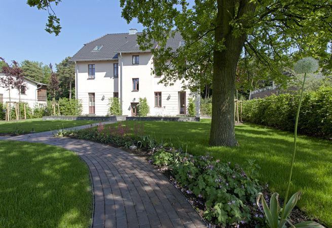 Der 1.500 qm große Garten wurde zu einem parkähnlichen Gelände umgestaltet.